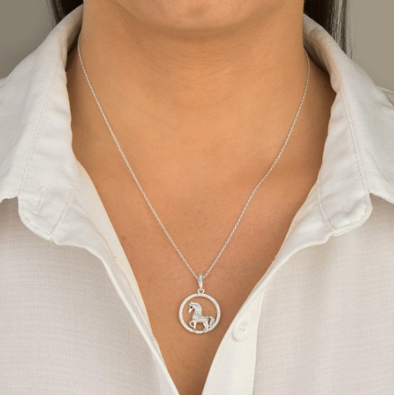 Gargantilha Cavalo Cercado Cravejado de Prata